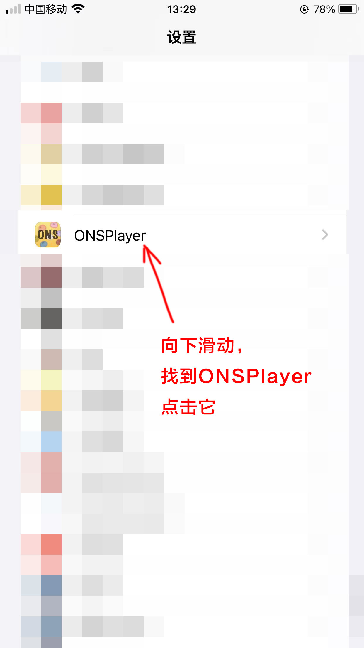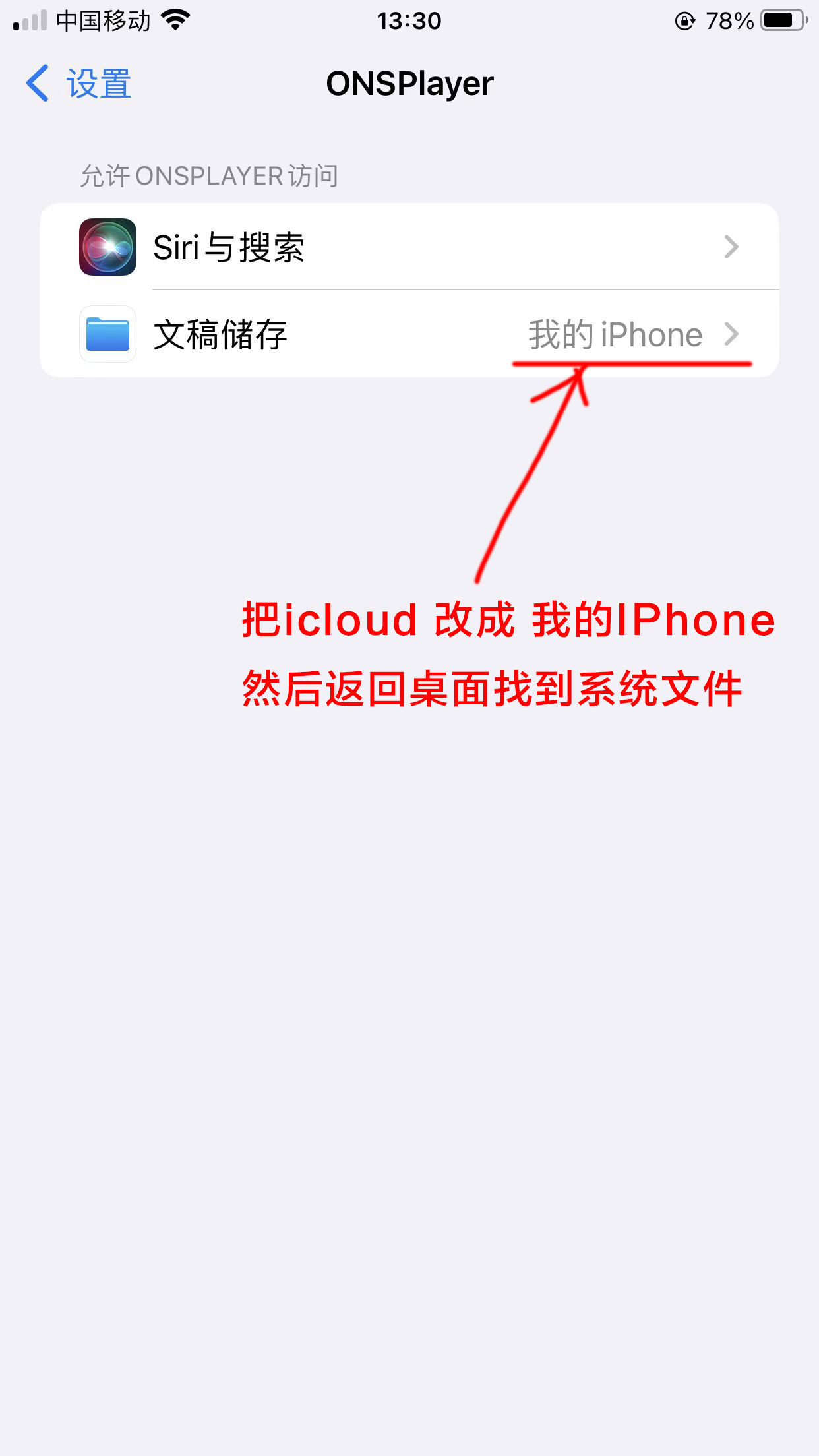 1.我们先到打开手机设置,找到ONSPlayer应用,需要把ONSPlayer模拟器的文稿储存模式修改一下