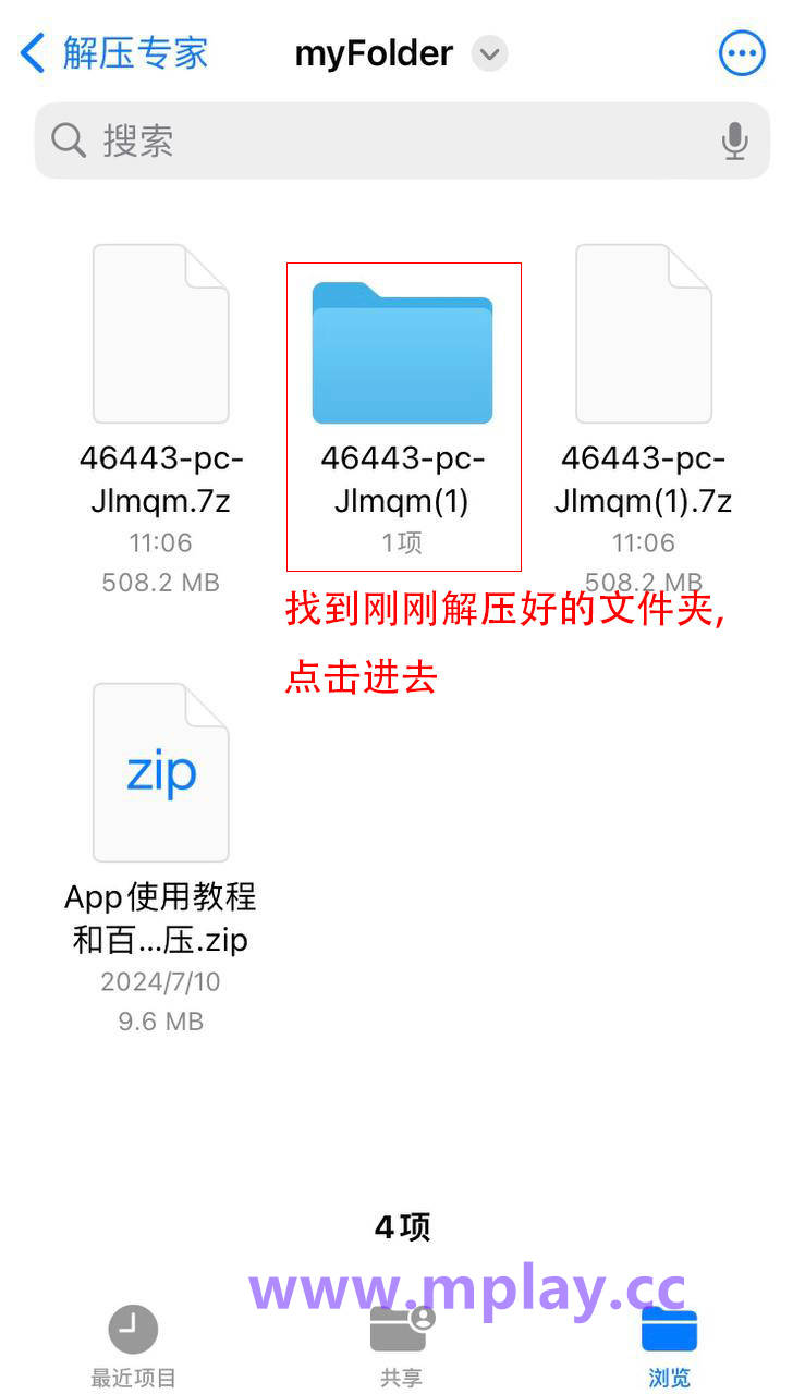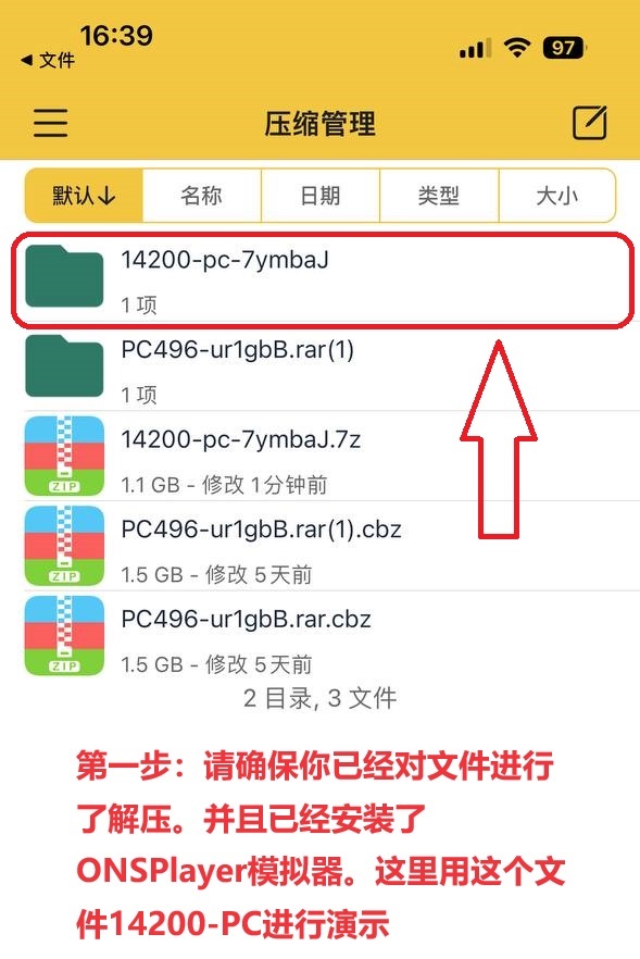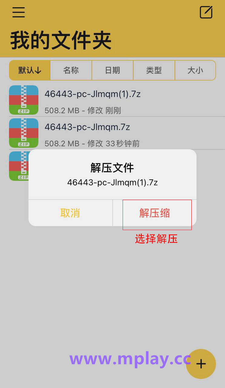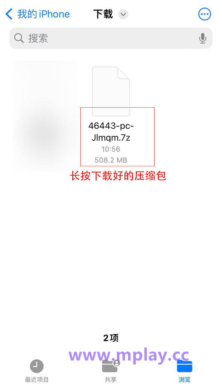 长按下载好的游戏文件夹压缩包
