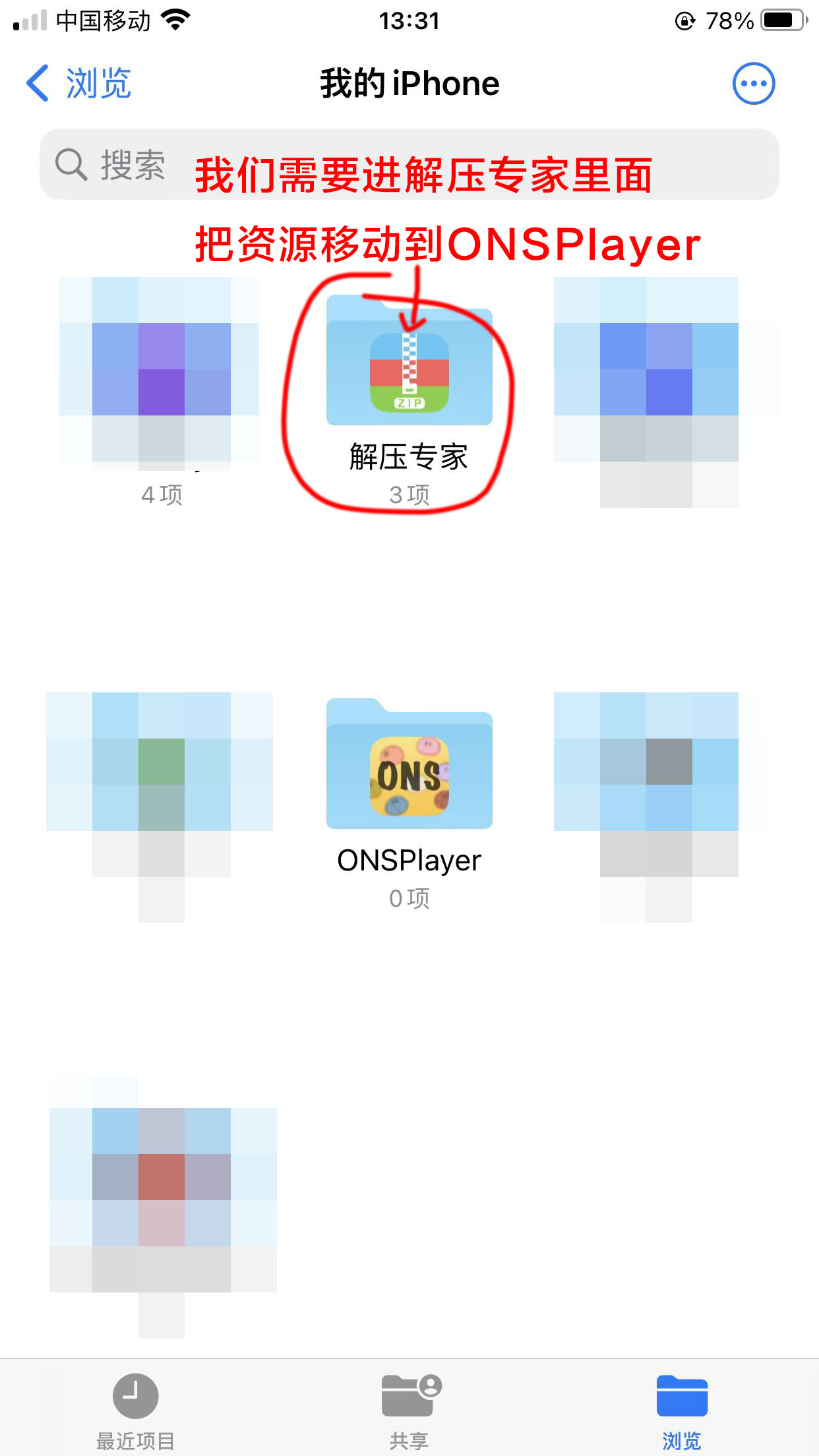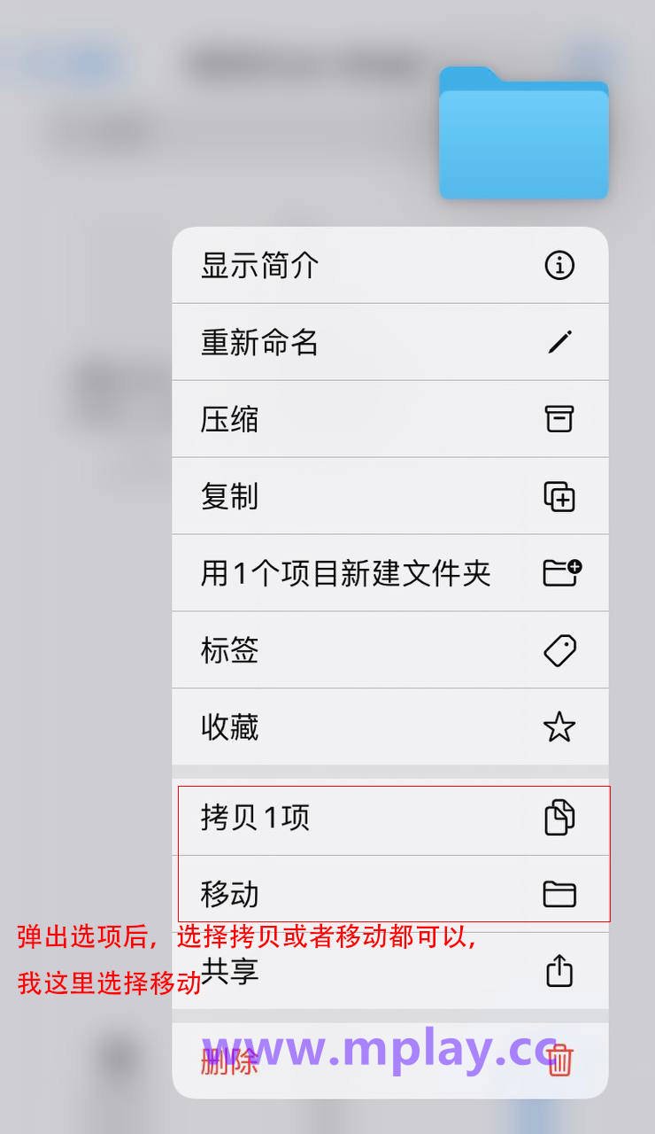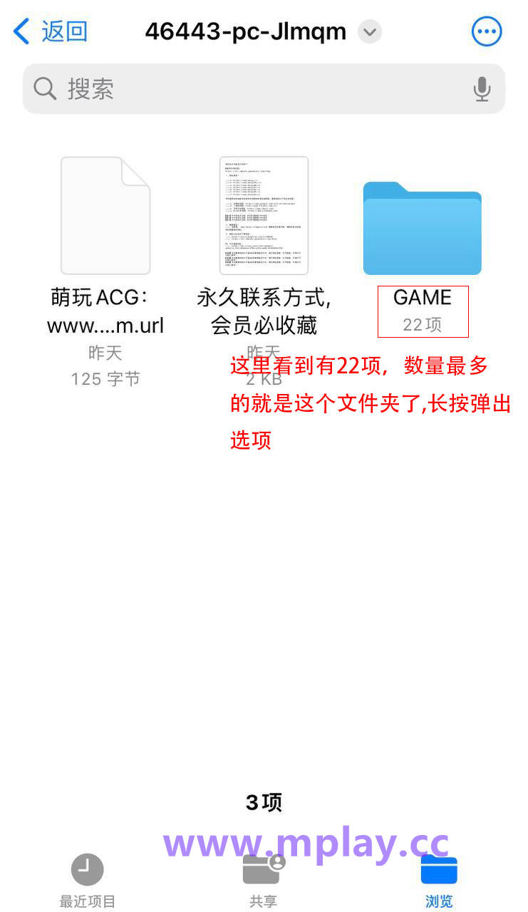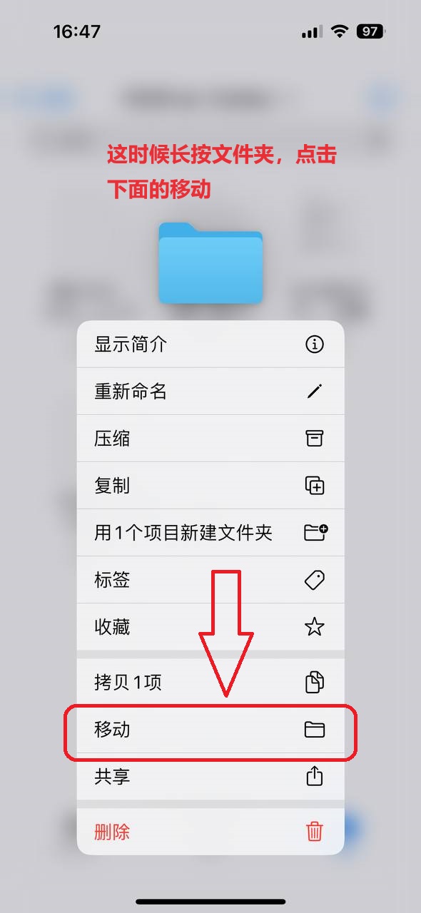 长按下载好的游戏文件夹压缩包